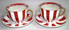 Grace Teaware Set Of 2 Teacup & Saucer Sets Red & White Stripes W/ Gold Trim New