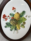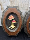 Vtg Set Of 2 Woodland Ceramic W/wood Frame Oval Wall Plaques Mushrooms Cottage