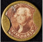 1862 Ayer's Sarsaparilla Large 3¢ Encased Postage Washington Stamp Xf
