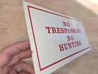Vtg 12x6 Painted Metal Red/white No Tresspassing No Hunting Sign One Sided