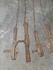 Lot Antique Primitive Animal Fur Meat Drag Double Hook Chain Metal Iron Forged