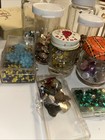 Vintage Crafts Beads Sequins In Vintage Jars, Glitter Purple, White, Green Blue