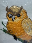 Vtg Hand Embroidered Crewel Orange Owl Framed W/ Real Butterfly Wing Accents