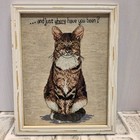 Framed Finished Completed Cat Cross Stitch Piece - Brown White Cat