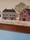 Vtg Cross Stitch Needle Point "a Country Village" Dark Wood Domed Frame 12" W
