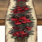 Rustic Christmas Table Runner Poinsettia Pinecone Festive Dining Table Decor