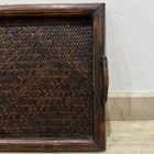 Vintage Wood And Bamboo Tight Weave Serving Tray W Handles Mcm Asia 15.5”x20.5”