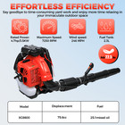 Commercial Backpack Leaf Blower Snow Blowers 75.6cc 2-stroke Gas Powered 907cfm