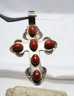 Vintage Navajo Sterling Silver & Coral Cross Pendant Signed Estate Find !