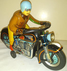 1950's Masudaya Atom Expert Rider Tin Harley Motorcycle Battery Op Works