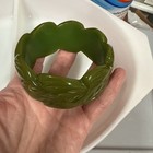 Vintage Deeply Carved Green Marbled Bakelite Hinged Clamper Bracelet