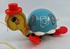 Vintage 1962 Fisher Price Musical Pull Along Tip Toe Turtle Pull Toy #773