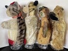 4 Steiff Hand Puppets Wittie Owl Tabby Cat Bully Bulldog Sarras Boxer Vintage