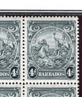 Barbados Kgvi 1938 4d Black 'curved Line' Sg253b Mnh Positional Block