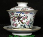 11''qianlong Famille Rose Porcelain Gold Flower Bird Tea Pot Flagon Tray Cup Set