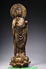 9'' Old Dynasty Pure Bronze Gilt Kwan-yin Guanyin Bodhisattva Buddha Statue
