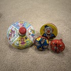 Lot Of 4 Vintage Tin Litho Toys - J. Chein Nursery Rhyme Top / Clown Noisemaker