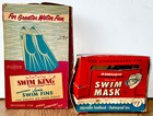 Vintage 1950’s Auburn Jets Swim Mask Plastic Lens & King Fins~junior Scuba Gear