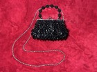 Vintage Stephanie Bag Black Beaded Formal Evening Frame Purse Optional Chain
