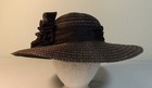 Vtg Black Woven Straw Wide Brim Hat Or Tilt Lg Bow Wedding Kentucky Derby 22.5"