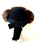 Vintage John Wanamaker Womens Fabric Knit Hat Cap Mink Trim Bow Black