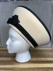 Vintage Eric Javits 100% Wool Hat Jackie- O Style Cream & Black Bow
