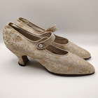 Victorian 19th C Silk Satin Wedding Shoes W Beautiful Beading - As Acquired