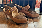 Vintage Authentic 1940's Women's Peep Toe Heels / Suede Shoes Size 6.5