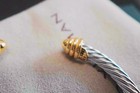 Gift/davidyurman4mm&classiccable&sterling Silver/braceiet &18k Gold Dome Bangie