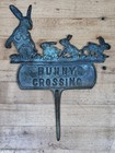 Vintage Brass Bunny Crossing Yard Garden Sign - Great Patina
