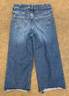 Gap Jeans Girls 7 Wide-leg Raw Hem Distressed Whiskered Stretch Festival Denim