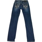 Miss Me Jeans Girls 16 Blue Medium Wash Denim Skinny Embellished 32 Inseam