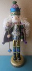 Pier 1 Large Wood Nutcracker King Royal Crown Purple Blue Gold 23”