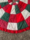 Vintage Patchwork Christmas Tree Skirt 44" Across Handmade Red Green White Lace