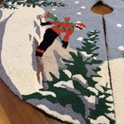 50” Wool Christmas Tree Skirt Ski Scene Hand Hooked Rug Winter Vintage Style