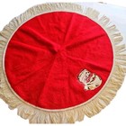 Christmas Tree Skirt Red Vintage 1970s Homemade Santa Sequin & Fringe