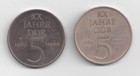 2 X 5 Mark, 1969 20 Years Gdr, 1 X Copper Nickel Htf And 1 X Nickel Brass