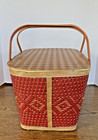 Vintage 1960's Redman Picnic Basket Red & Brown Woven Wicker Design 18" Long Euc