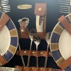 Luxury Wicker Picnic Basket W/ Cups Wineglasses Utensils