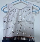 Gk Elite Gymnastics Leotard White Navy Sequins Size Cs
