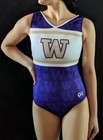 Nwt Gk Elite Gymnastics Leotard Washington Huskies Spirit Purple White Size Axs