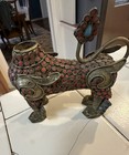 🐉 Antique Tibetan Bronze Snow Lion Figure Coral & Turquoise Inlay Missing Head