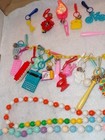 Vintage 1980s Plastic Clip Bell Charm Chain Lot Necklace Pop Beads [fa405]
