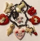 Puppy Dogs Hearts Angel Celluloid Cracker Jack Charm Bracelet