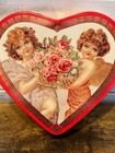 Vintage Valentines Heart Shape Tin Box With Victorian Style Angels Cherubs Roses