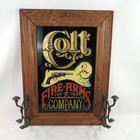 Vintage Colt Firearms Company Bar Glass Sign With Ornate Brass Hat Hooks 17 X 23