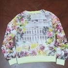 Rebecca Taylor Ivory Gray Floral Sketch Silk Pleated Sleeve Blouse Women's S