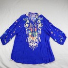 Johnny Was Taifa Blouse Womens Xl Blouse Tunic Embroidered Floral Cupra 11322-4