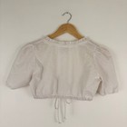 Hammerschmid Dirndl Blouse White Puff Sleeve Cropped Lace Trim Tie Front S
