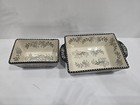 Baum Ceramic Set Of 2 Casserole Mini Loaf Dishes Black Floral Paisley Design